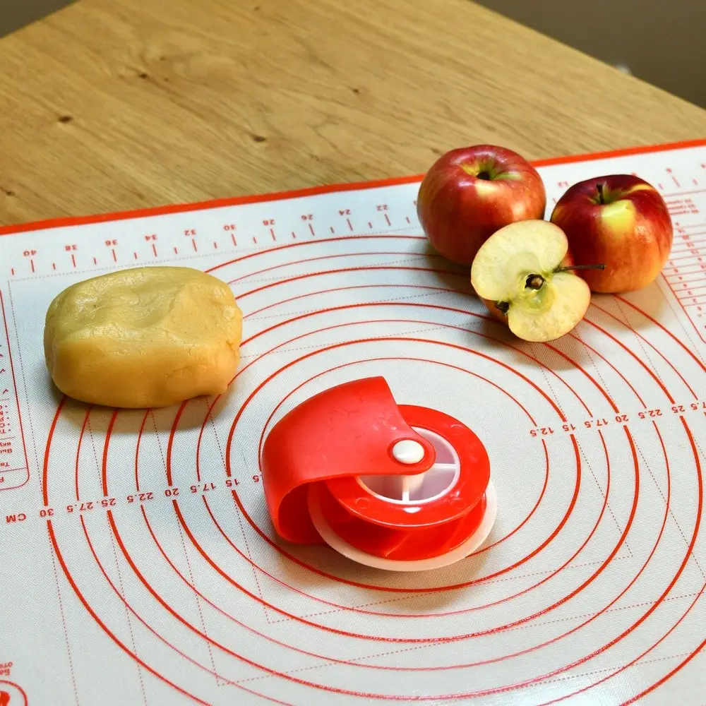 Незаменимое приспособление для оформления закрытых пирогов. Достаточно соединить края теста, ролик поставить на край пирога перпендикулярно поверхности и прокатить ролик по всей окружности пирога, надавливая на ролик и одновременно отрезая излишки теста.