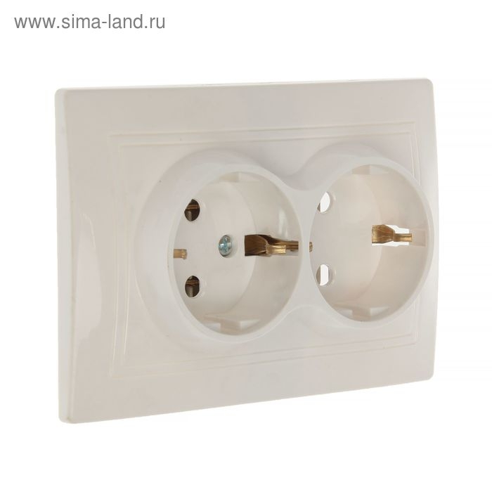 Розетка Smartbuy "Венера", 16 А, двухместная, скрытая, с з/к, белая