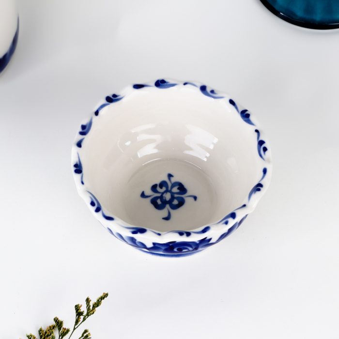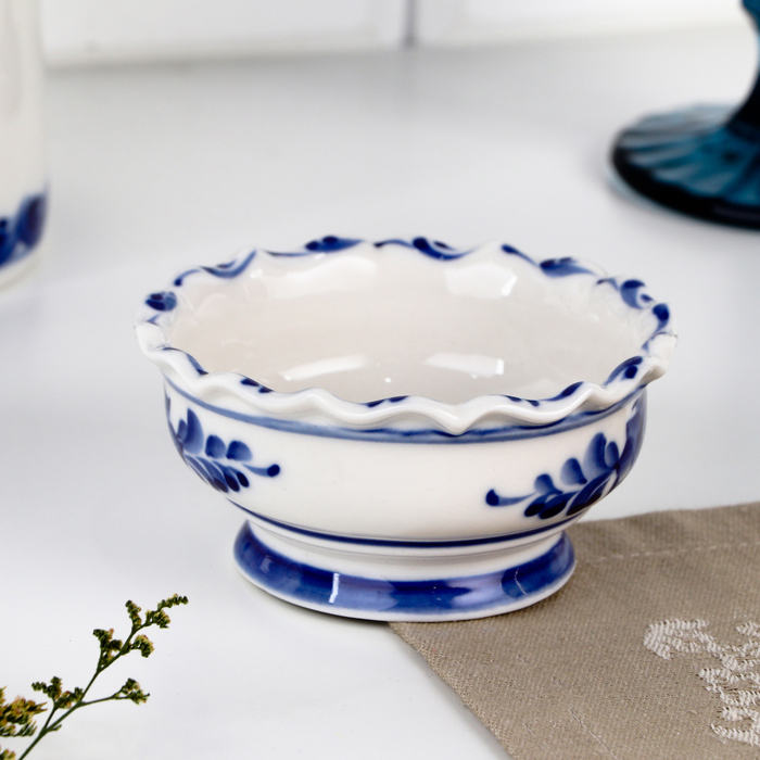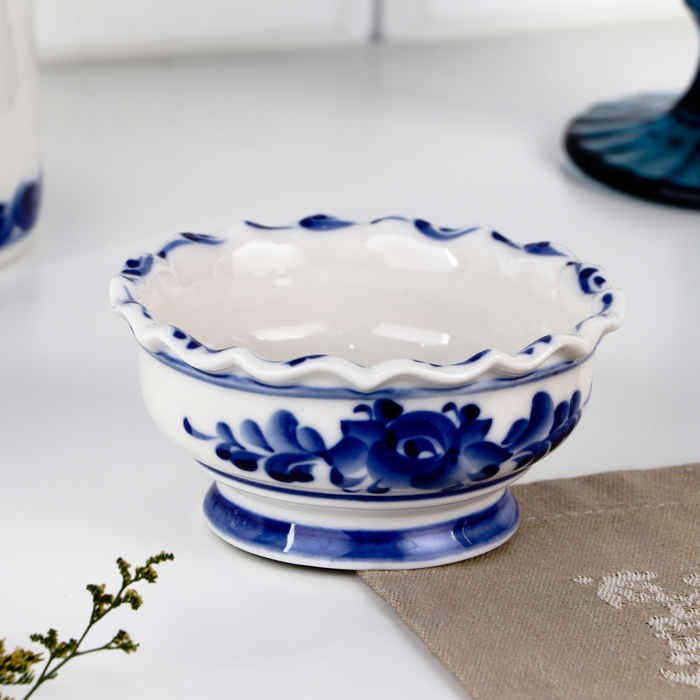 Розетка «Цветы», 10,5х10,5×5 см, гжель