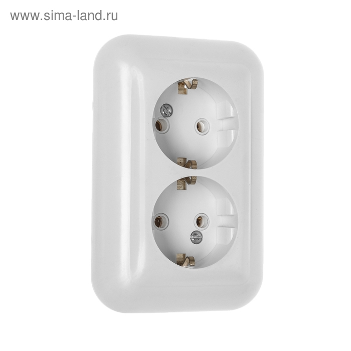 Розетка "Элект" РС 16-002, 16 А, 250 В, двухместная, скрытая, с з/к, белая