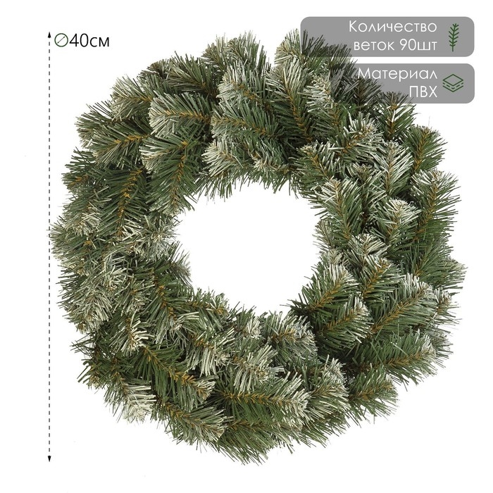 Рождественский венок "Праздничный" заснеженный 40 см., 90 веток