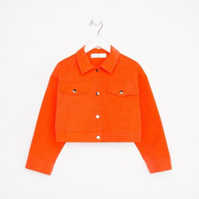 Рубашка для девочки джинсовая, укороченная KAFTAN, размер 34 (122-128 см), цвет оранжевый