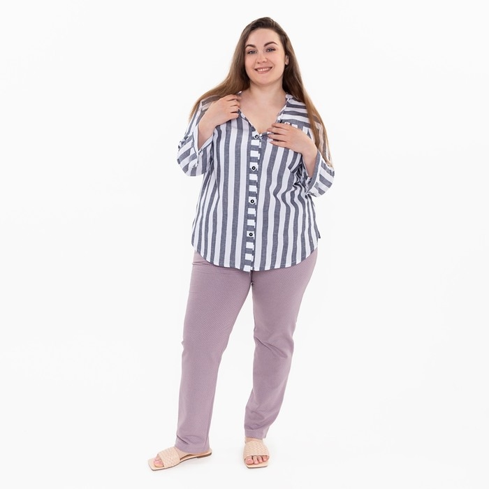 Рубашка женская, цвет серый/белый, размер 46