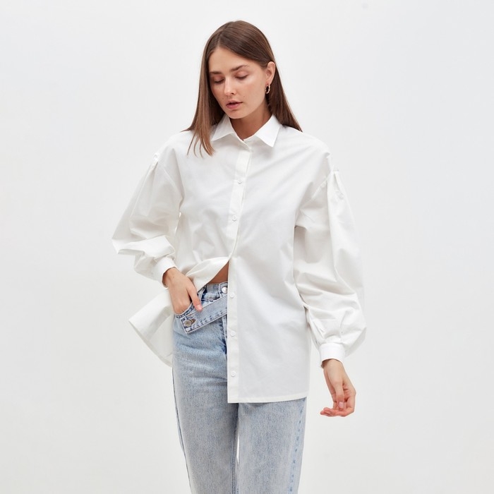Рубашка женская с объёмными рукавами MINAKU: Casual Collection цвет белый, р-р 42