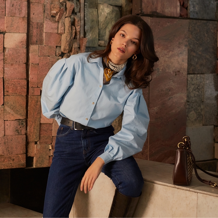 Рубашка женская с объёмными рукавами MINAKU: Casual Collection цвет голубой, р-р 42
