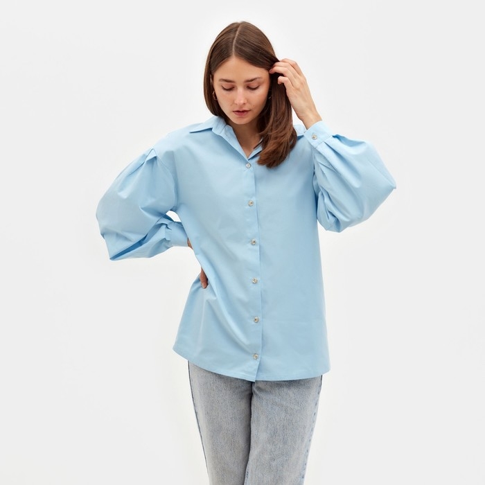 Рубашка женская с объёмными рукавами MINAKU: Casual Collection цвет голубой, р-р 44
