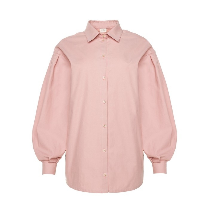Рубашка женская с объёмными рукавами MINAKU: Casual Collection цвет темно-розовый, р-р 42