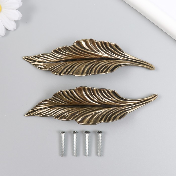 Ручка для шкатулки латунь "Листья" набор 2 шт 3,5х13х2,4 см