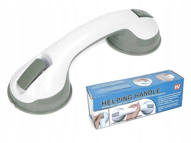 Многофункциональный вакуумный поручень для ванной. Это простое и в то же время полезное устройство представляет собой многофункциональный вакуумный поручень, который можно крепить практически на любую плоскую ровную поверхность. Для этого необходимо просто нажать на кнопку, которой оснащен поручень.Это устройство прекрасно послужит как ручка для ванной или ручка для туалета, а также может использоваться в качестве мобильных перил или послужить в качестве дополнительной опоры людям с ослабленными мышцами. Такой поручень не нужно прибивать к стене гвоздями или крепить его при помощи клея, при этом работая по принципу вакуумной присоски, такой поручень будет удобен не только как ручка для ванной, но и как дополнительные перила. При этом риск того, что такой поручень внезапно оторвется от стены абсолютно исключается.**Длина** 29 см. **Максимальная расчетная нагрузка** не превышает 80 килограмм.**Материал** пластик.