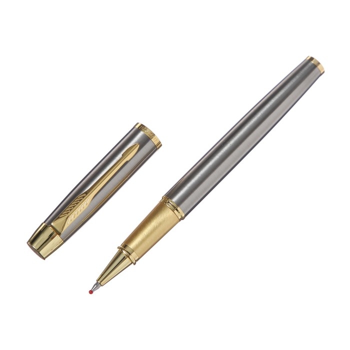 Ручка подарочная роллер в кожзам футляре, корпус серебро, золото