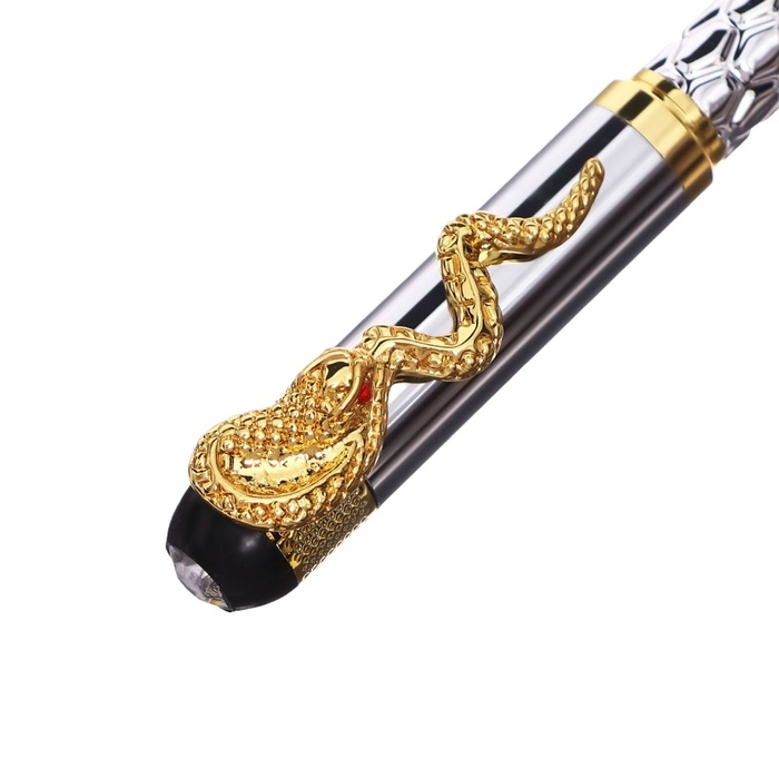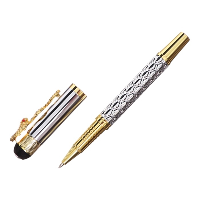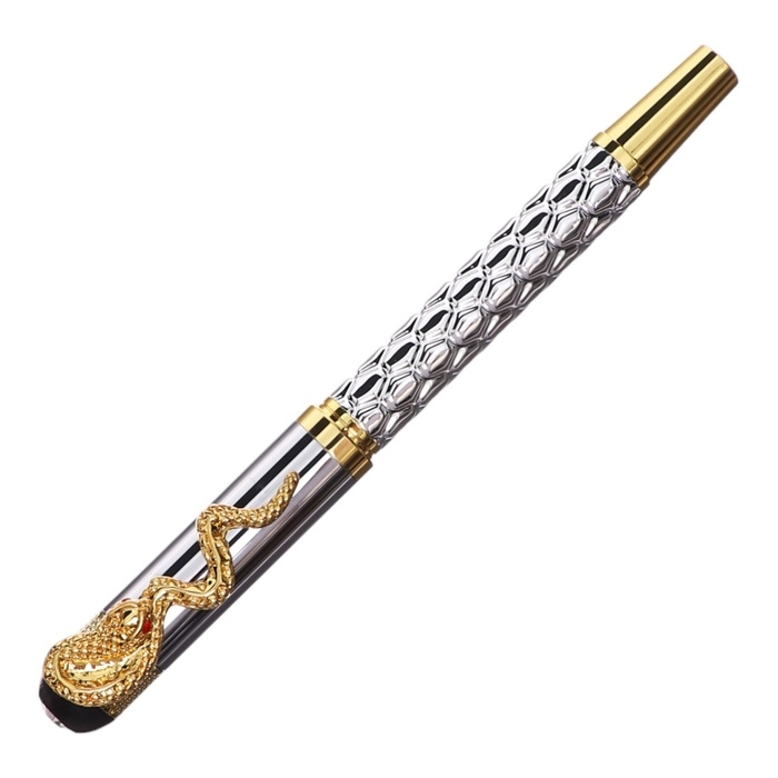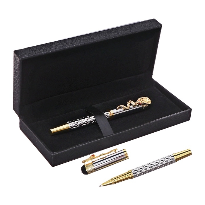 Ручка подарочная роллер в кожзам футляре Змея корпус золото/серебро