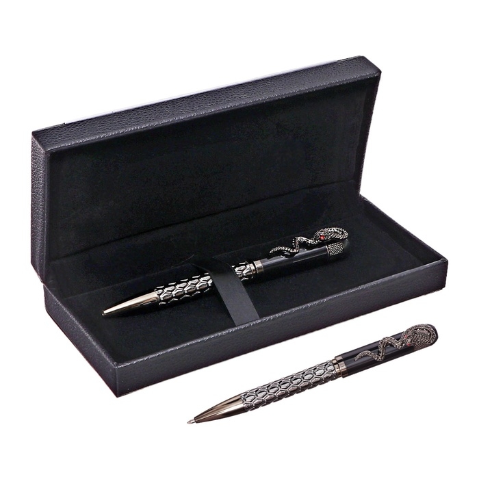 Ручка подарочная шариковая в кожзам футляре поворотная Змея корпус бронза