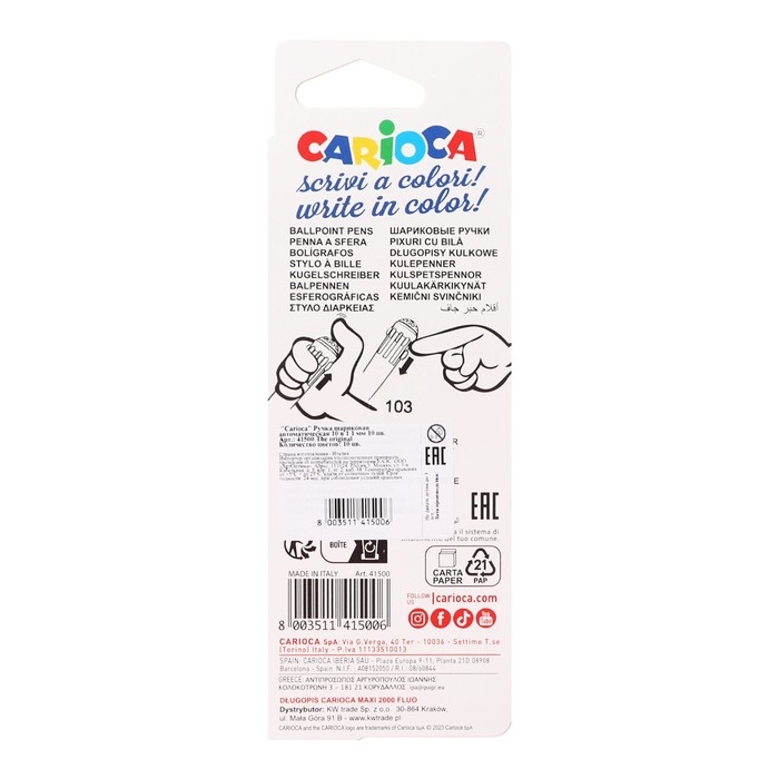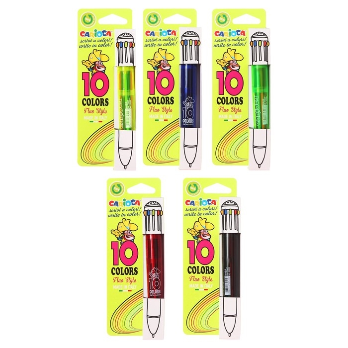 "Carioca" Ручка шариковая автоматическая 10 в 1 1 мм 10 цв. Предлагается в трёх цветных вариантах: с винтажным илифлуоресцентным прозрачным корпусом