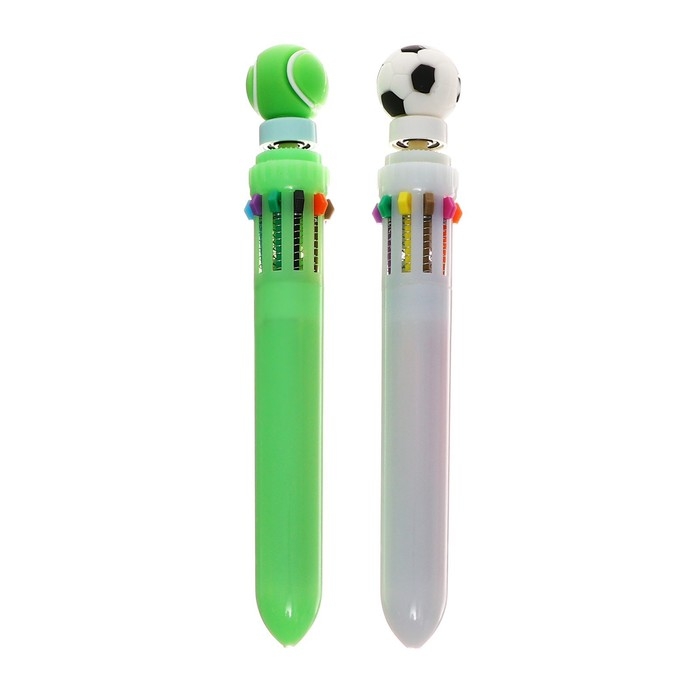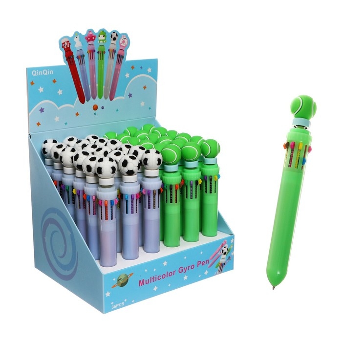 Ручка шариковая автоматическая 10-ти цветная, "Спортивные мячи-спиннер", МИКС