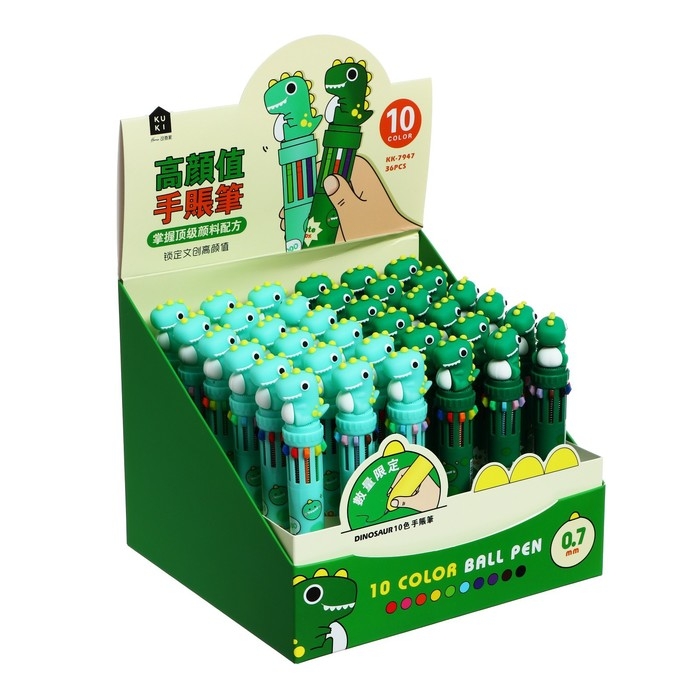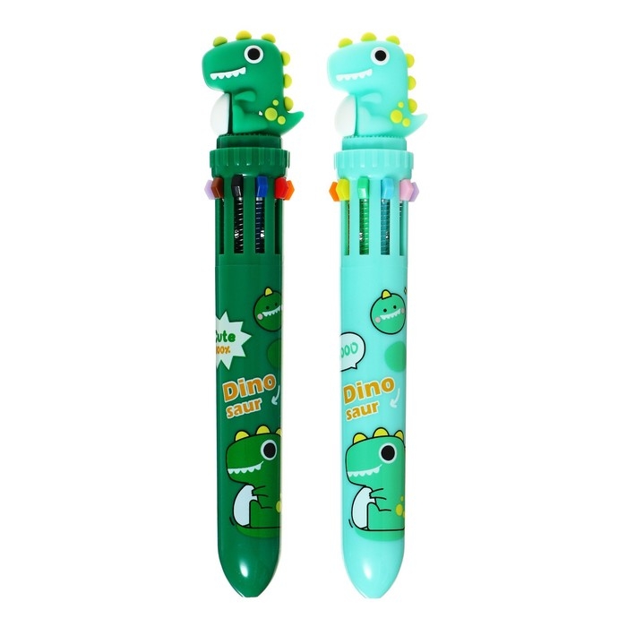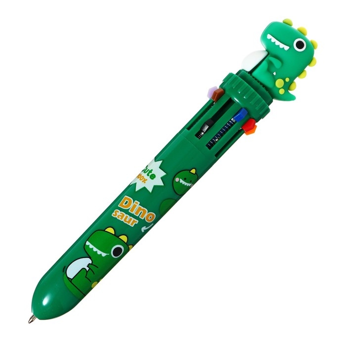 Ручка шариковая автоматическая 10-ти цветная, стержень 0,7 мм, "Дино", МИКС