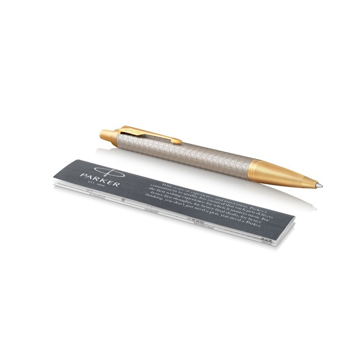 Ручка шариковая Parker IM Premium Grey GT M, корпус из нержавеющей стали серый глянцевый/ золотой, синие чернила (1931687)
