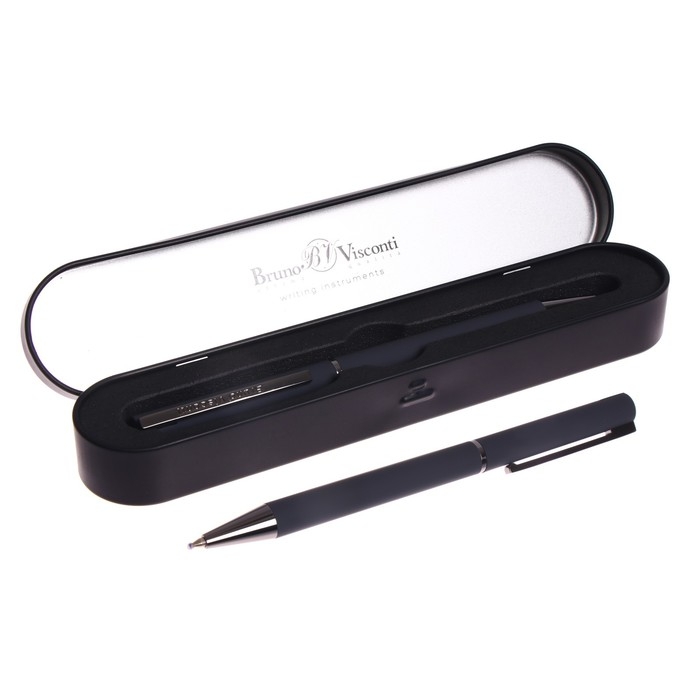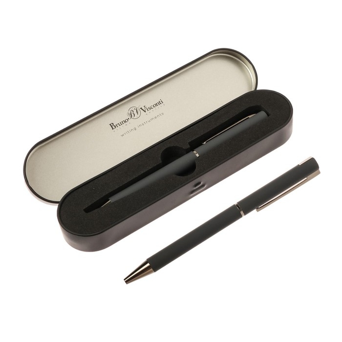 Ручка шариковая поворотная, 0.7 мм, Bruno Visconti Bergamo, стержень серый, серый металлический корпус, в металлическом футляре