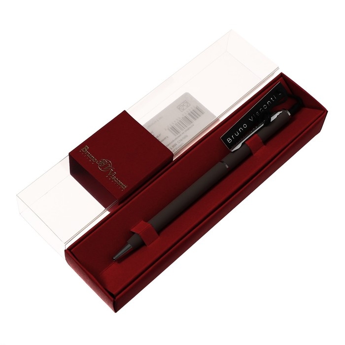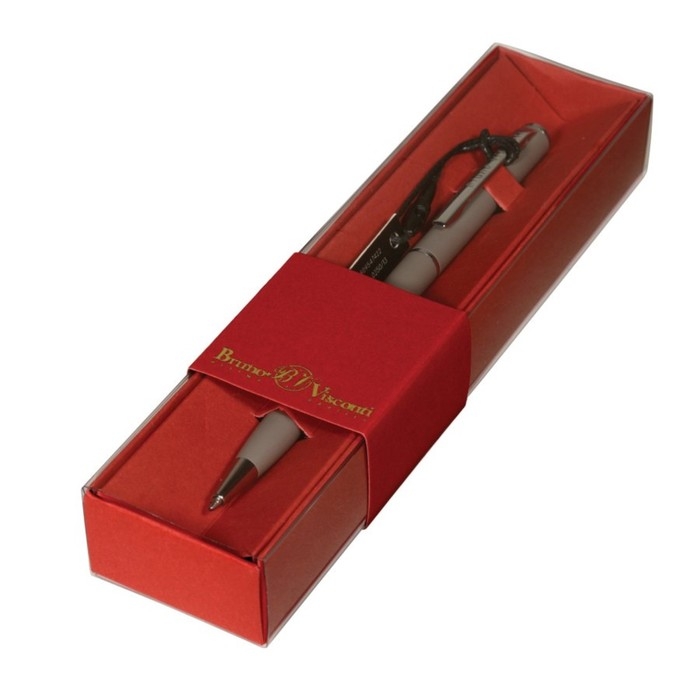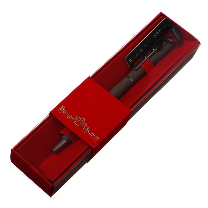 Ручка шариковая поворотная, 0.7 мм, BrunoVisconti PALERMO, стержень синий, металлический корпус Soft Touch серый, в красном футляре
