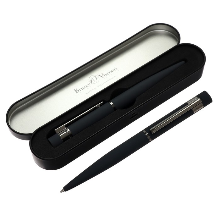 Ручка шариковая поворотная, 1.0 мм, Bruno Visconti VERONA, стержень синий, серый металлический корпус, в металлическом футляре