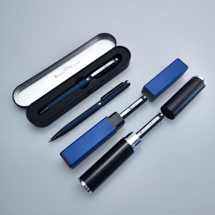 Лаконичный дизайн, прочный металлический корпус, строгость формы подчеркнут статус владельца ручки. Удобство в эксплуатации и тактильно приятные ощущения подарит бархатистое покрытие Soft Touch.
