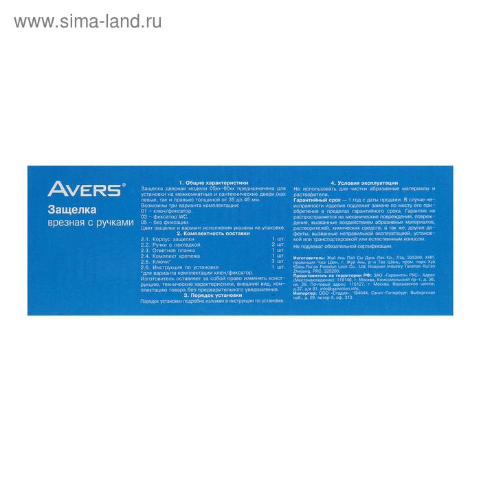 Ручка-защёлка AVERS 0598-01-G, с ключом, с фиксатором, цвет золото