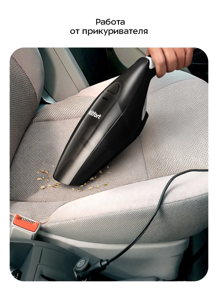 Ручной автомобильный пылесос Kitfort КТ-5314 — это компактное устройство, которое легко справится с пылью и мусором при уборке вашего автомобиля. Благодаря работе от прикуривателя вы можете очистить салон автомобиля в любом месте. Небольшие габариты и малый вес пылесоса делают процесс уборки простым и удобным, а хранить его можно в багажнике.