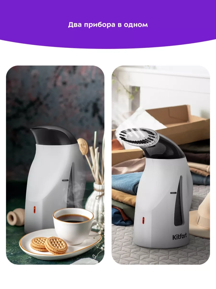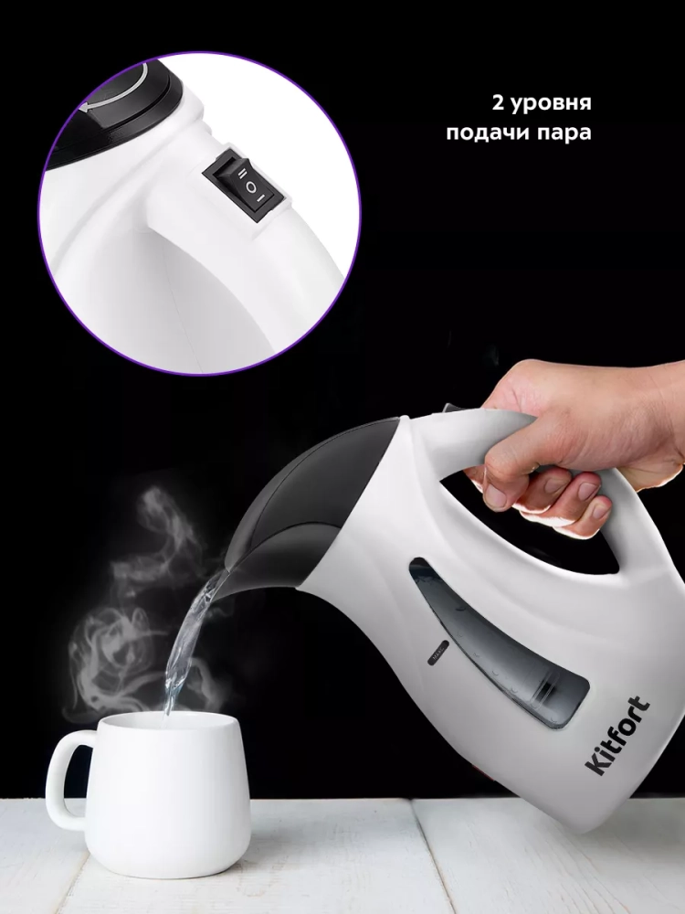 Ручной отпариватель-чайник Kitfort КТ-9226 предназначен для разглаживания изделий из текстиля с помощью потока горячего пара, а также для кипячения воды. Устройство приведет в порядок вещи быстро и практически в любом месте без раскладывания гладильной доски. Одежда при этом может висеть на вешалке, сушилке для белья или веревке. Ручной отпариватель-чайник КТ-9226 обладает такими достоинствами, как мощный поток пара, многофункциональность, простое управление и небольшой вес. Его удобно брать с собой в путешествие: устройство не займет много места и заменит сразу два устройства — ручной отпариватель и чайник.