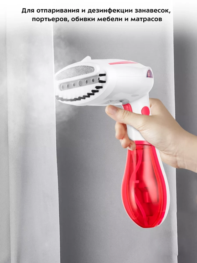 Ручной отпариватель — более функциональное и универсальное устройство, чем утюг. Под действием пара волокна ткани не растягиваются и не сжимаются, как под воздействием утюга, а приобретают объемность и эластичность. Отпариватель не деформирует ткани и не оставляет заломов или лоснящихся пятен на одежде. Помимо отпаривания одежды, вы можете отпарить занавески и портьеры (для этого их не обязательно снимать), обивку мягкой мебели, матрасы или мягкие игрушки. При этом вы не только разгладите складки и вернете форму вещам, но и освежите и продезинфицируете их, так как горячий пар хорошо убивает пылевых клещей и другие микроорганизмы.