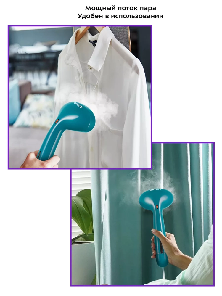 Ручной отпариватель — более функциональное и универсальное устройство, чем утюг. Под действием пара волокна ткани не растягиваются и не сжимаются, как под воздействием утюга, а приобретают объемность и эластичность. Отпариватель не деформирует ткани и не оставляет заломов или лоснящихся пятен на одежде. Помимо отпаривания одежды вы можете отпарить занавески и портьеры (для этого их не обязательно снимать), обивку мягкой мебели, матрасы или мягкие игрушки. При этом вы не только вернете форму вещам, но и освежите и продезинфицируете их, так как горячий пар хорошо убивает пылевых клещей и другие микроорганизмы.