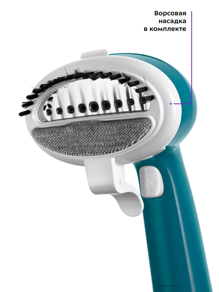 В комплекте предусмотрена ворсовая насадка, которая поможет очистить вещи от пыли, ворса, волос и шерсти домашних животных.