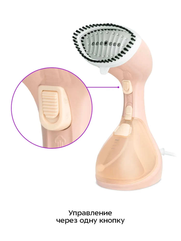 У отпаривателя КТ-9299 простое управление одной кнопкой на ручке прибора. Шнур отпаривателя оснащен защитой от перегиба, что увеличивает срок службы прибора. В комплекте предусмотрена ворсовая насадка, которая поможет очистить вещи от пыли, ворса, волос и шерсти домашних животных. Для удобства заполнения резервуара для воды в комплекте есть мерный стакан.