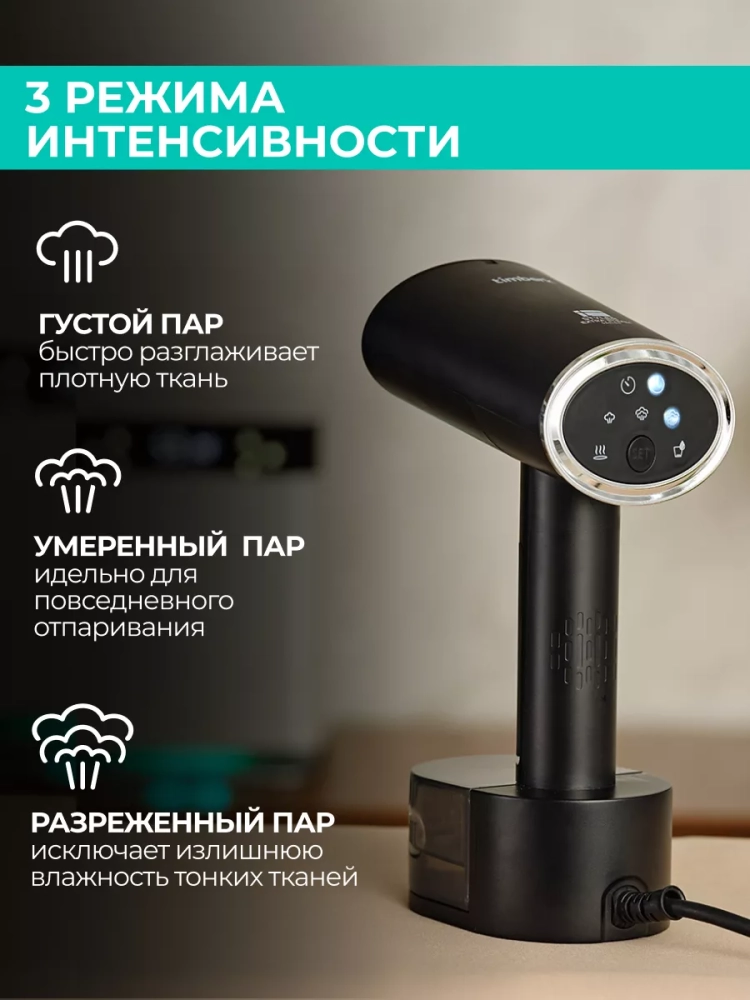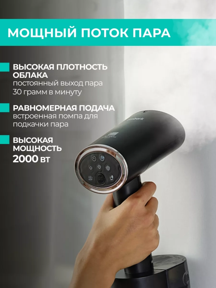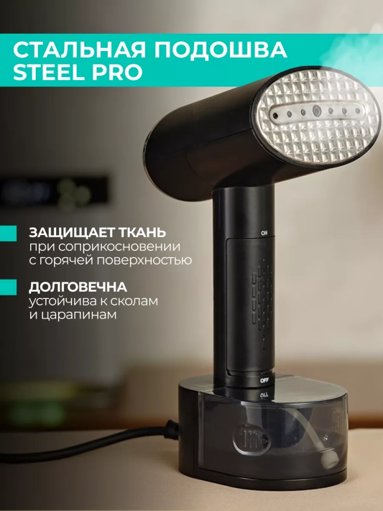 Мощный отпариватель с со стальной подошвой STEEL PRO справится даже с самой плотной тканью. 3 режима отпаривания, информативный дисплей и функция автоотключения делают устройство максимально удобным в использовании. Функция автоотключения при отсутствии воды; Встроенная помпа для непрерывной подачи пара; Насадка-щётка для ворса; Удаляет бактерии и микроорганизмы; Основные характеристики; Стальная подошва; Мощность 2000 Вт; Цветной LED-дисплей; 3 режима подачи пара; Паровой удар 30 г/мин; Резервуар для воды 320 мл;
