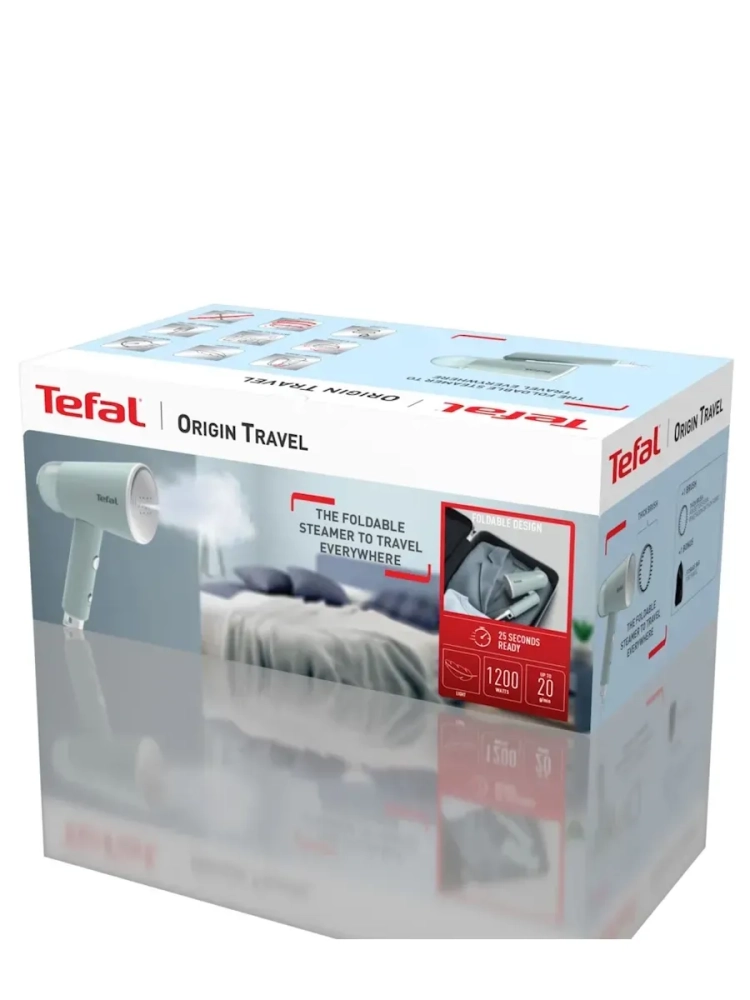 Ручной отпариватель Tefal Origin Travel DT1034E1. Складной отпариватель Tefal Origin Travel станет вашим надежным помощником в путешествиях. Несмотря на сверхкомпактный размер, прибор обладает мощностью 1200 Вт и нагревается всего за 25 секунд. Тратьте время на впечатления - постоянная подача пара 20 г/мин поможет быстро разгладить складки на одежде и освежить ее.