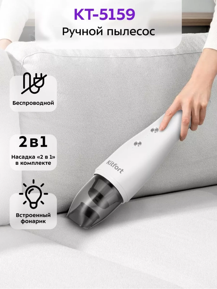 Ручной пылесос Kitfort КТ-5159 — это портативное и компактное устройство, которое легко справится с пылью и мусором. Благодаря работе от аккумулятора пылесос имеет неограниченный радиус действия: от любого уголка квартиры до машины или беседки в саду. Небольшие габариты и малый вес пылесоса делают процесс уборки простым и удобным.