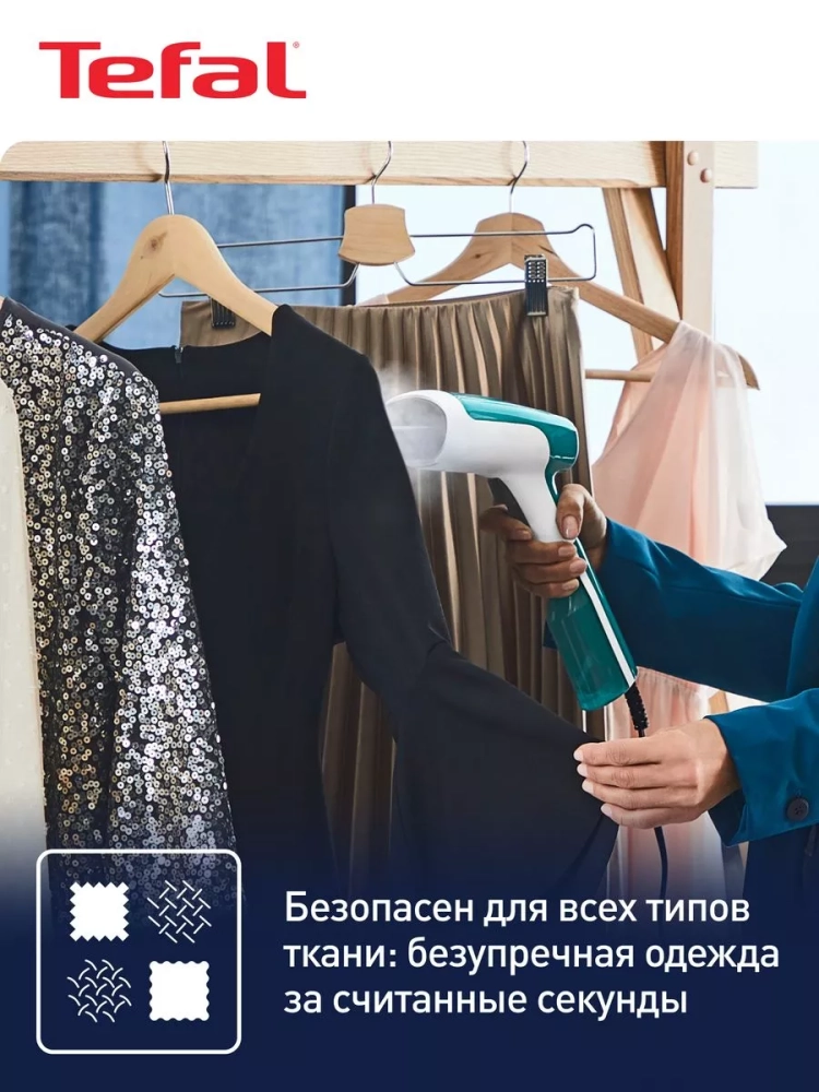С ультралегкой конструкцией, забота и уход за вашей одеждой станет невероятно удобным. Бытовой прибор для белья готов к работе всего за 15 секунд, обеспечивая моментальное освежение и создание идеального облика в последний момент. Мощность парового генератора для штор и тюли Тефаль 1300 Вт гарантирует высокую эффективность отпаривания для превосходного ежедневного ухода за одеждой. Постоянная подача пара 20 г/мин идеально подходит для мгновенного устранения складок, обеспечивая превосходный вид как дома, так и в путешествии. Испытайте легкий уход за одеждой день за днем без использования гладильной доски. Простой крючок или обычная вешалка — это все, что нужно, чтобы одежда была гладкой. Ультралегкий формат обеспечивает удобное отпаривание как дома, так и в путешествиях.