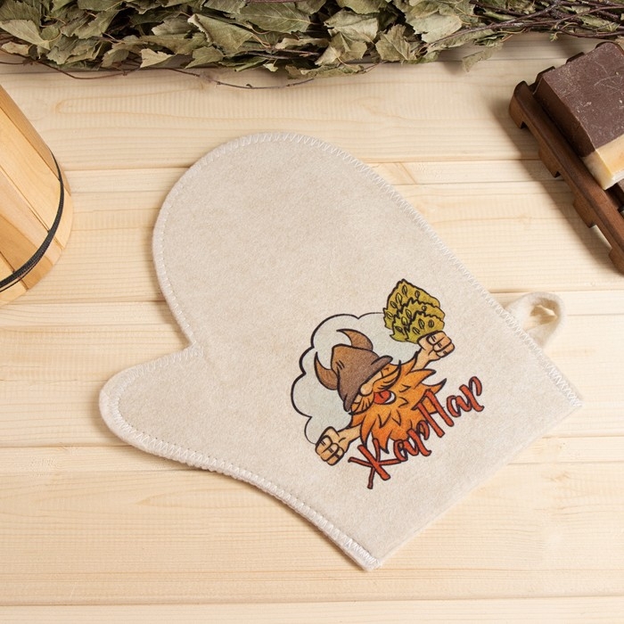 Рукавица для бани с вышивкой "Люблю баньку", первый сорт