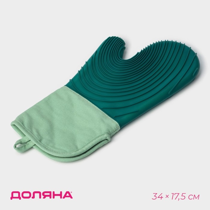 Рукавица для горячего с манжетой Доляна «Профи» силикон, 34×17,5×2см, цвет зелёный