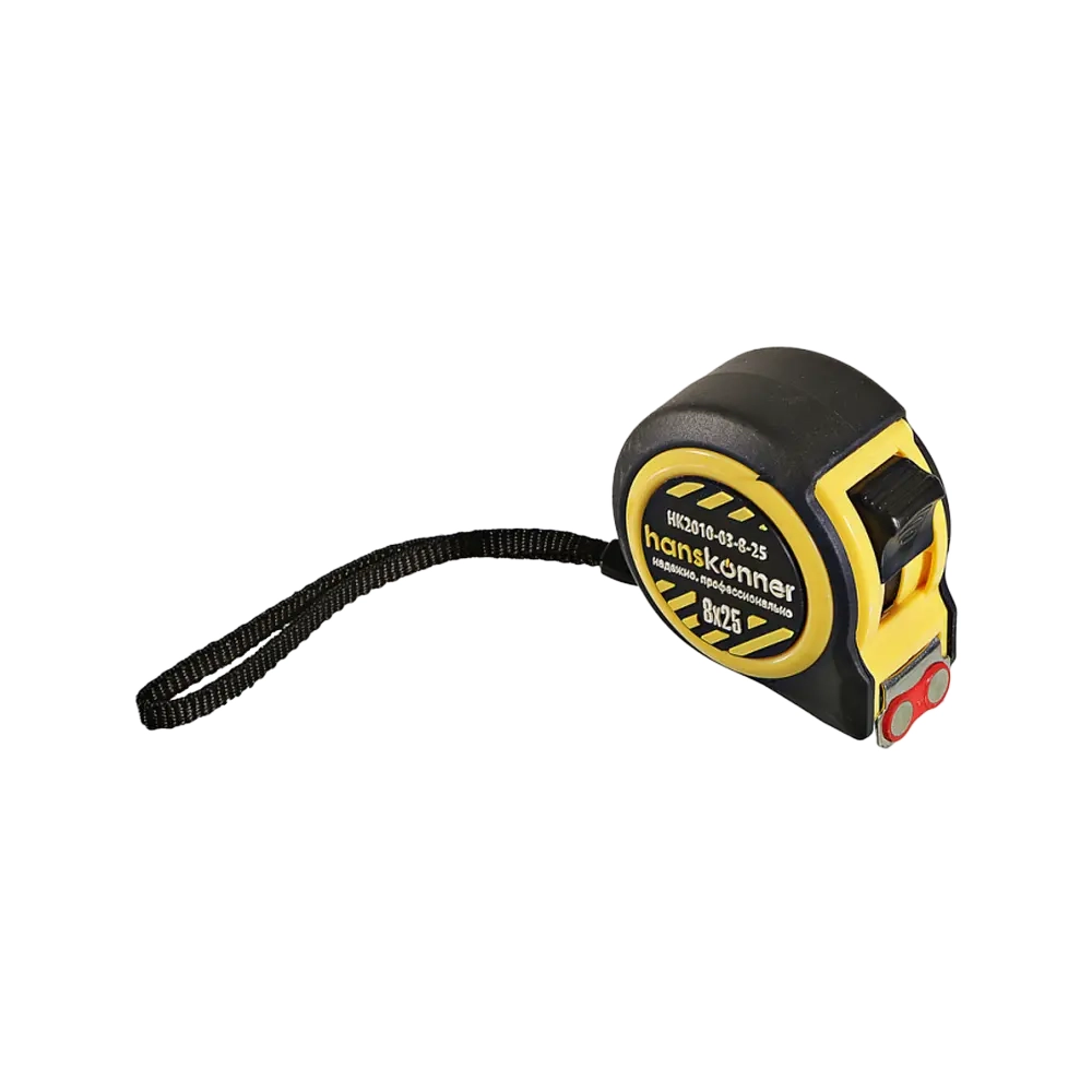 Рулетка 8м x 25мм, 2 стопа, мощный магнит, Hanskonner HK2010-03-8-25