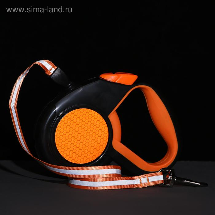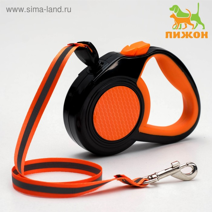 Рулетка "Пижон" светоотражающая, 3 м, до 15 кг, трос, прорезиненная ручка, оранжевая