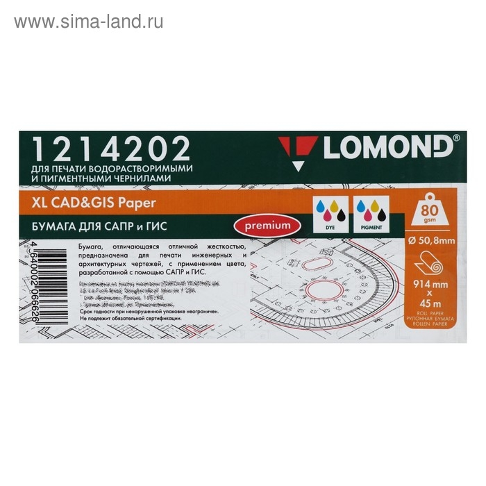 Рулон для плоттера "Премиум" 914 мм х 45 м х втулка 50,8 мм, офсет 80 г/м², белизна CIE 146% (1214202)