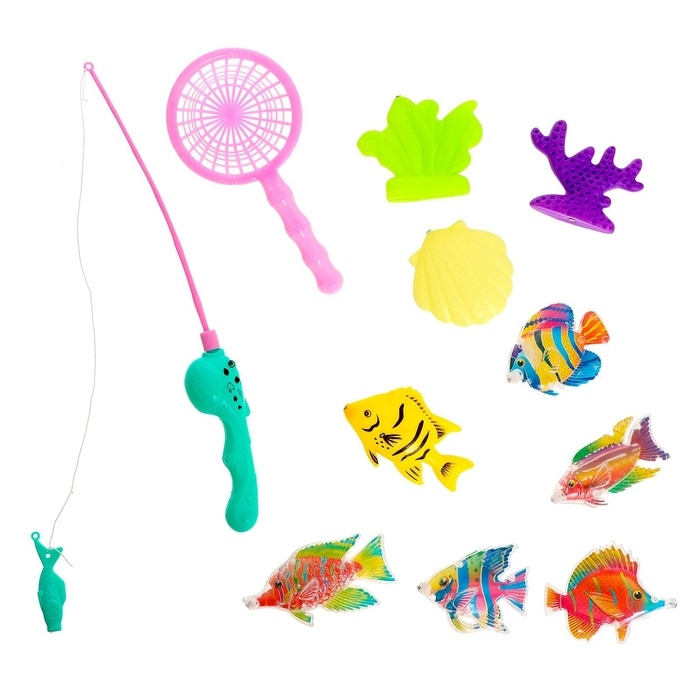 Набор «Красивые рыбки» с 9 морскими обитателями, сачком и удочкой поможет крохе почувствовать себя настоящим рыбаком!