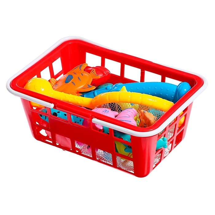 Рыбалка «Волна приключений» в корзине: 1 удочка, 1 сачок, 20 рыбок, МИКС