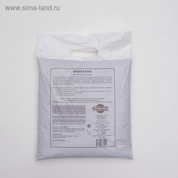 Витамины для животных и птиц. Кормовая добавка Рыбная мука произведена из продуктов переработки рыбы и относится к белковым концентратам. Добавка в корм Рыбная мука богата минеральными веществами и хорошо усваивается. Премикс Рыбная мука благодаря высокому содержанию до (74%) легкоусвояемого, биологически полноценного протеина, аминокислот, комплекса макро и микроэлементов, является очень ценным компонентом в кормлении сельскохозяйственных животных различного вида, особенно птиц.