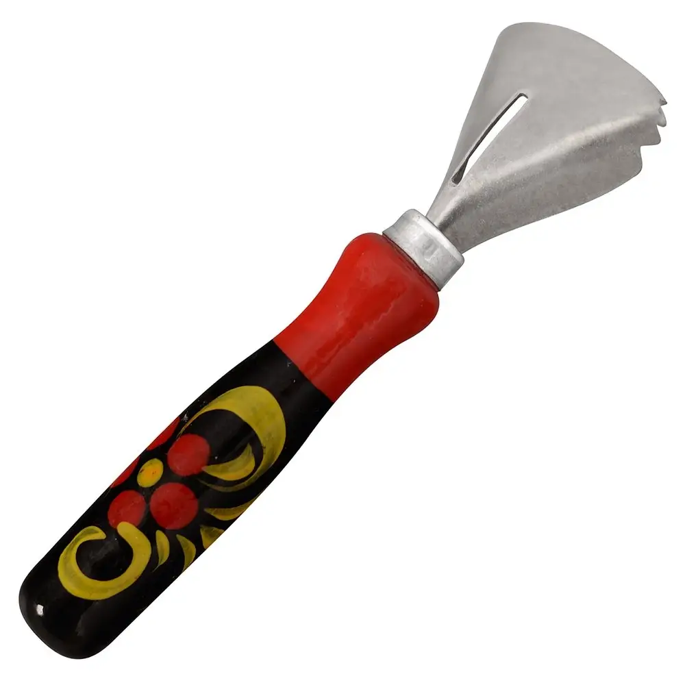 Рыбочистка с рисунком - это специальный инструмент, который используется для очистки рыбы от чешуи. Он имеет удобную ручку и острое лезвие, которое легко проникает в слой чешуи и удаляет его без повреждения мяса рыбы. На ручке рыбочистки нанесен яркий и красивый рисунок, который делает его не только функциональным, но и декоративным элементом на кухне. Важно использовать рыбочистку для очистки рыбы, чтобы избежать травмирования рук и сохранить целостность мяса рыбы.Перед первым использованием и после каждого применения промыть мягкой щеткой или губкой с жидким моющим средством, сполоснуть и просушить. Нельзя мыть в посудомоечной машине.