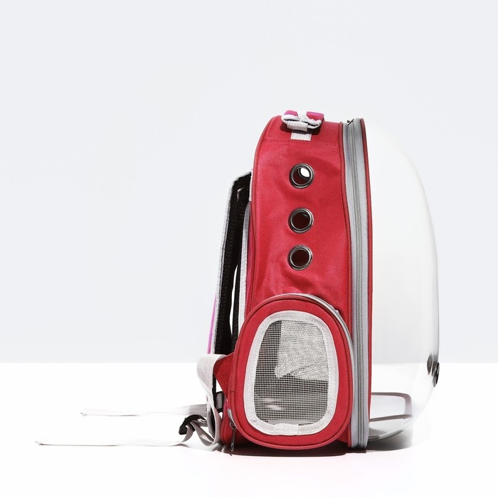 Рюкзак для переноски кошек и собак, прозрачный, 31 х 28 х 42 см, красный