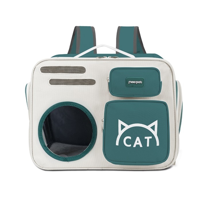 Рюкзак для переноски кошек и собак, прозрачный, 40 х 30 х 26 см, серо-зелёный