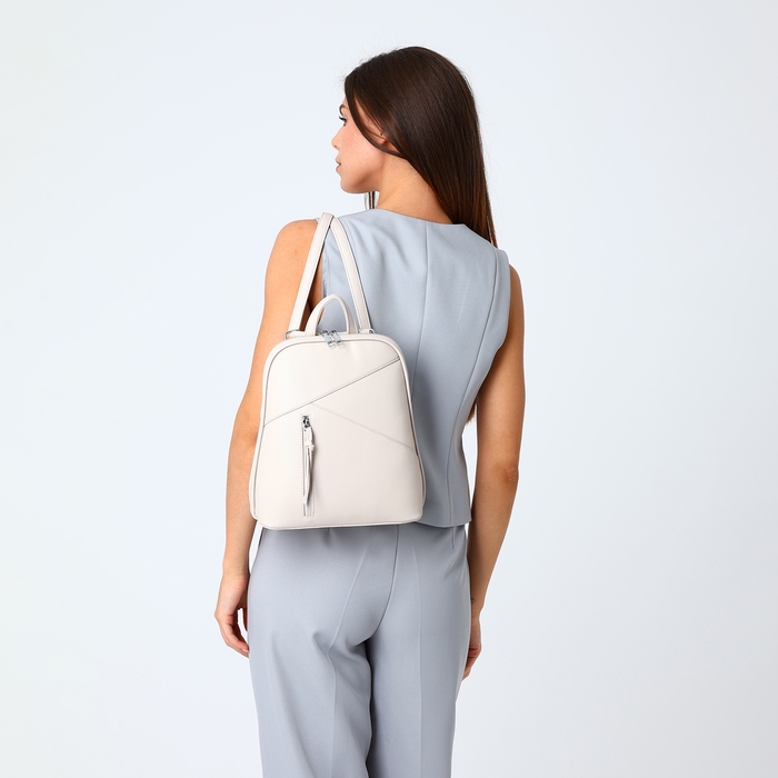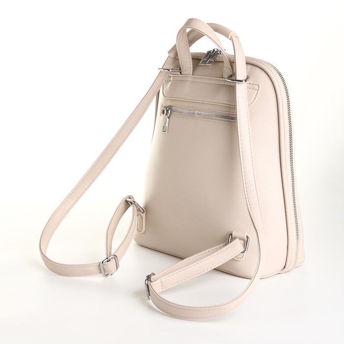 Рюкзак городской из искусственной кожи на молнии, цвет бежевый