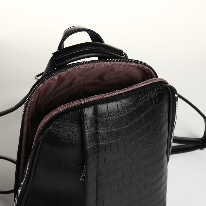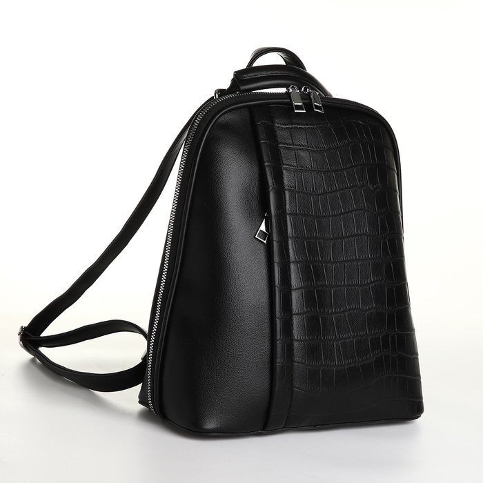 Рюкзак городской из искусственной кожи на молнии, цвет чёрный