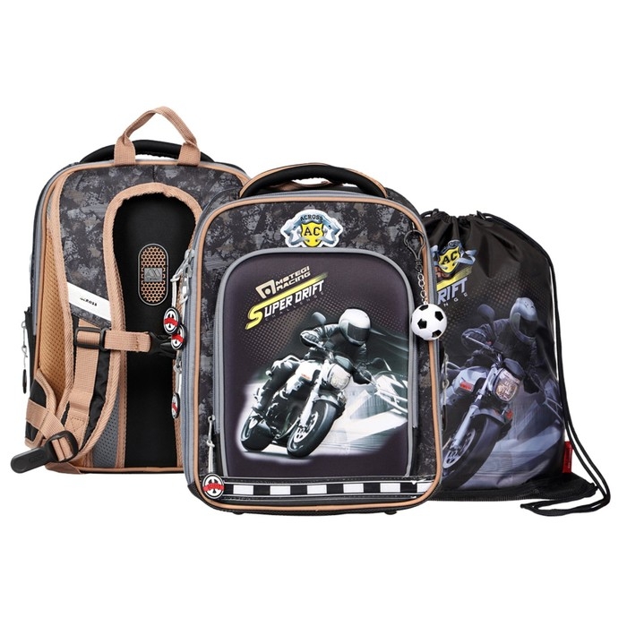 Рюкзак каркасный 35 х 26 х 14 см, Across HK22, наполнение: мешок, пенал, синий HK22-4