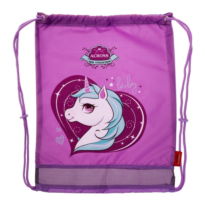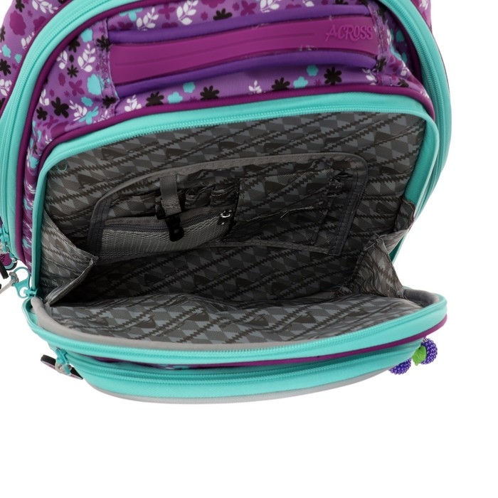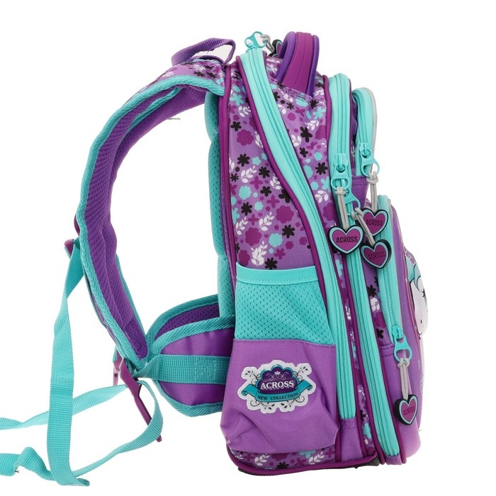 Рюкзак каркасный 35 х 28 х 15 см, Across, наполнение: мешок, пенал, брелок, фиолетовый